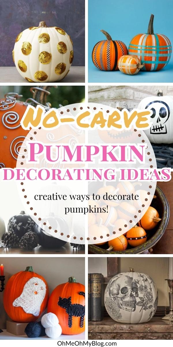 Skipping the carving tools means less mess and more opporutnity for creativity. And since the pumpkin remains intact, it’ll last longer. No more limp, sad pumpkins after just a week or two! So get inspired to decorate your own pumpkins some awesome inspiration! Check out these no-carve pumpkin decorating ideas, and use them to express your personality! Oh, and did I mention? These are kid-friendly projects as well!
