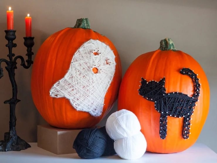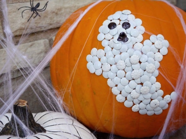 No-Carve Pumpkin Decorating With Thumb Tacks